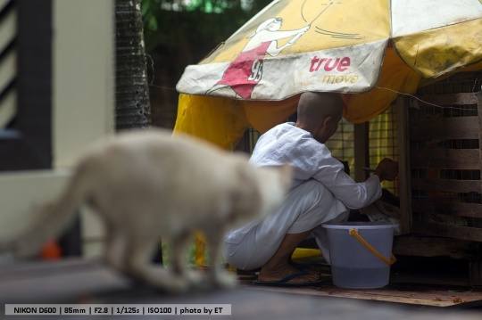 9岁的泰国小孩,帮着家里人卖手工编织品。我们围着他拍了半天,最后ET忍不住还是花20泰铢(约4元人民币)买了一个竹蚂蚱,支持他一下。85mm F1.8G,收缩到F2.5之后就很锐利了。
