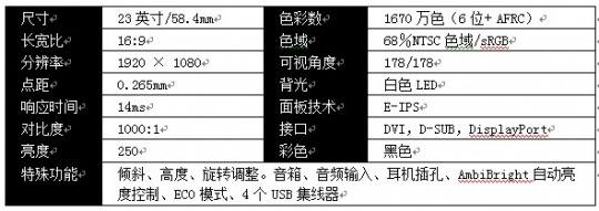 EA232WMi显示器提供了DVI数字,D-SUB15针模拟,高质量DP这三种显示器接口,满足了电脑显卡设备的连接使用。