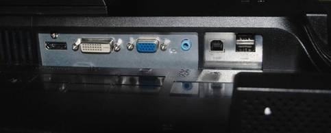 EA232WMi显示器除了内置音箱外,为方便使用,还在显示器内置的音箱一端提供了3.5mm的耳机插孔,还额外提供了4个USB hub,两个在显示接口处,两个在显示器右侧边上。