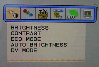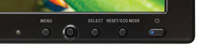 EA232WMi显示器延续了EA191的OSD按钮设计风格,还在其傍边增加了一个环境光感应器。如下图,从左到右分别是:环境光感应器、菜单按钮、方向控制操纵杆、复位/ECO节能按钮、开关按钮。