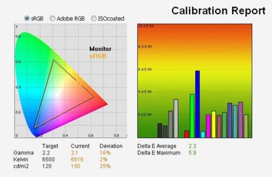 因考虑到很多使用者并没有专业显示器校正仪器,出厂默认的sRGB状态的准确度就非常重要,如果默认sRGB颜色很准确,则EA232WMi显示器不需要特别校准就能满足使用,这将是初级使用者最想看见的结果。