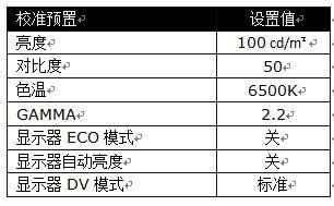 默认sRGB状态下,对比度等等指标全部采用出厂默认,即对比度50%,为了测试不受干扰,特别关闭了ECO节能和环境光感应功能,但出场亮度设置为100%,明显过高,肉眼控制调整为70%。