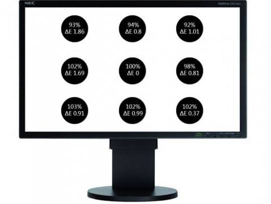 好的液晶显示器有一个非常重要指标就是屏幕均匀度,EA232WMi显示器屏幕均匀度采用国际标准ISO12646中的9点检测,ISO12646中的9点略微靠近屏幕中央,是人视觉观察图片的重点位置,要求亮度相对中心不超过10%,色差ΔE不超过3。