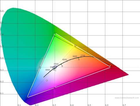 校正前色温为黄色点,不在准确的D65范围内,而且青色、品红色都偏离的标准,这也导致了整体颜色会有偏差。而校正后色温、青色、品红形成了完美的交集,保证了每个颜色的准确性。