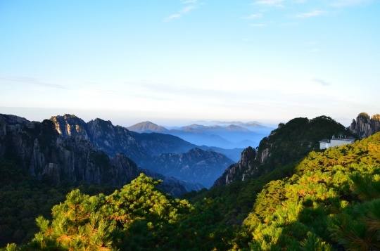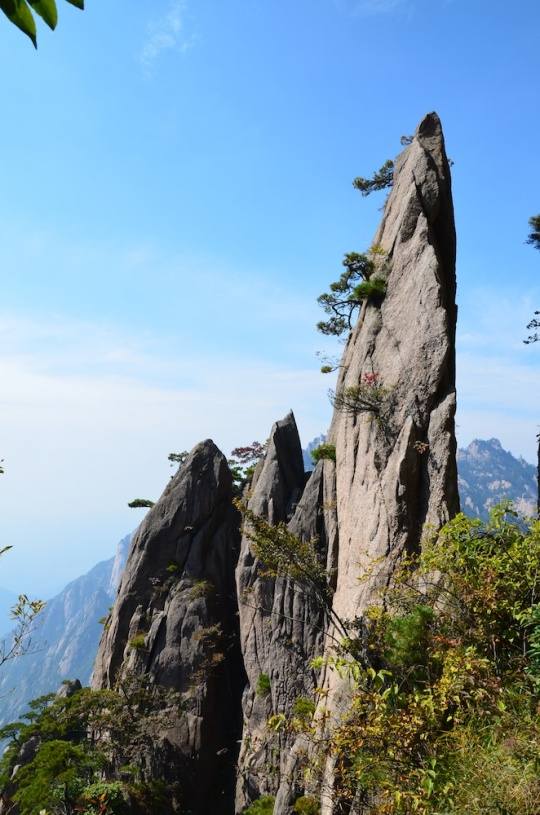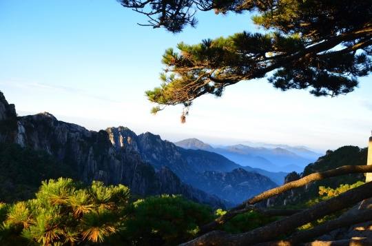 在黄山拍摄,松树也是一道美景,拍摄时要掌握前景与后景的搭配。