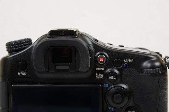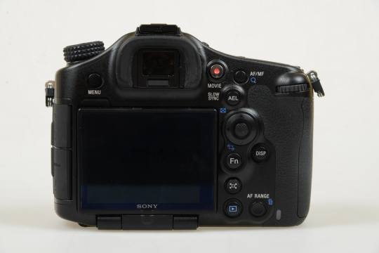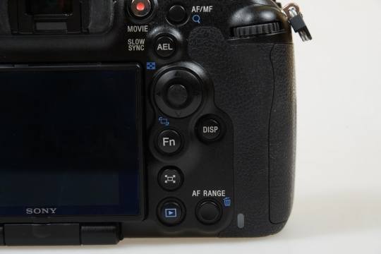 相机背面,按键布局与α77相似,值得注意的是右下角的删除按钮多个了个“AF RANGE”标记,也就是自动对焦范围控制功能,通过该按钮可以在相机上将对焦距离调整到自动对焦系统能够聚焦被摄物的范围。后文我们会详细介绍该功能。