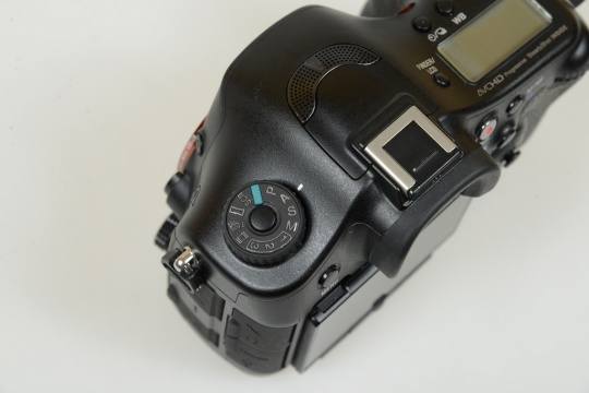 相机的左肩模式转盘上搭载了模式转盘锁定释放按钮,有效防止因摩擦而意外更改拍摄模式。模式转盘上有自动(AUTO)、程序自动、光圈优先、快门优先、手动、场景选择、扫描全景、SCN场景、动态短片和远摄变焦连续拍摄优先AE(T10)