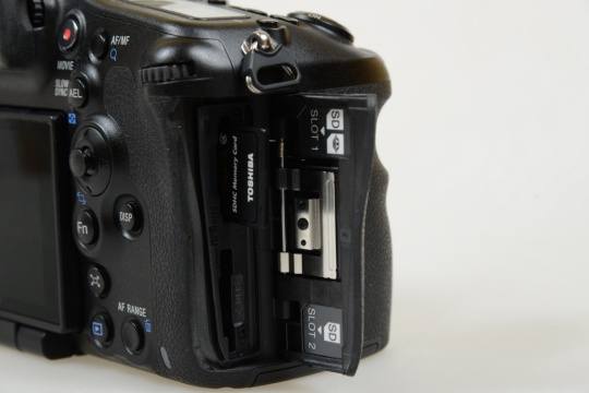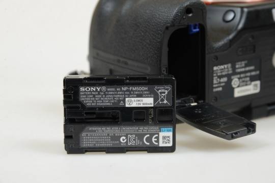 存储方面,索尼α99采用了双卡槽设计。其中一个卡槽支持SD存储卡,另一个支持SD存储卡和记忆棒。双卡设计允许同时备份(录制会按RAW 格式文件/ JPEG 格式文件,或照片/ 视频数据排序),且双卡之间也可进行复制。此外它还允许视频被同时录制到两张卡中。 供电方面NP-FM500H,容量为1600mAh,官方标称使用电子取景器拍摄约410张,使用LCD拍摄约500张,这样的数据比α77有所下降,对于一款全画幅高端产品这样的续航能力并不乐观。