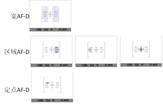 此外AF-D可以与多种自动对焦区域相组合。如宽(全屏)、对焦区域(左中右区)、定点(中央点)、局部(自由点)。总的来说102个辅助对焦点的加入还是起到一定作用,但绝没有数字上那么夸张,真正依仗的还是那19点