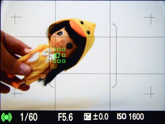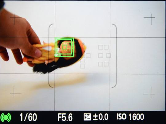 左区域 开启AF-D 横向移动玩偶 我们可以看到辅助对焦点联动作用