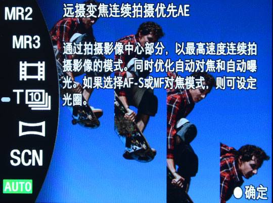 远摄变焦连续拍摄优先AE(T10)下事实上可分两档,10张/秒和8张/秒。10张/秒:使用全幅拍摄时,变焦比例约×2.3(影像尺寸设为S尺寸);使用APS-C尺寸拍摄时,变焦比例约×1.5。8张/秒:使用全幅拍摄时,变焦比例约×1.5(影像尺寸可设为M或S尺寸)。使用APS-C尺寸拍摄时,用完整视角拍摄影像。 也就是说10张/秒连拍最高只能用460万像素,而8连拍张/秒相当于AP-C剪裁,可得到1000万像素影像。