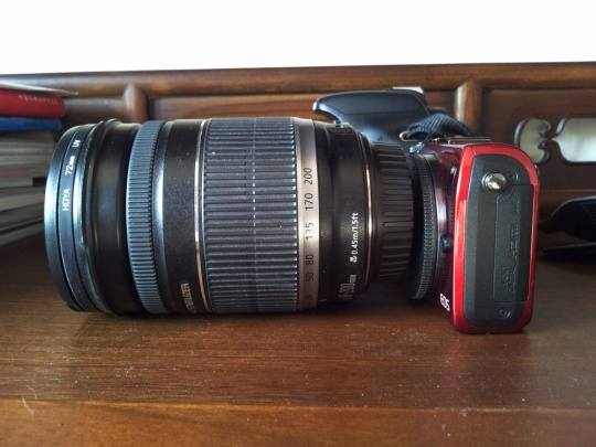 由于我没有拿到转接环,就简单的笔划了一下,EOS-M在装上普通EF镜头以后,便携性能并不容乐观。