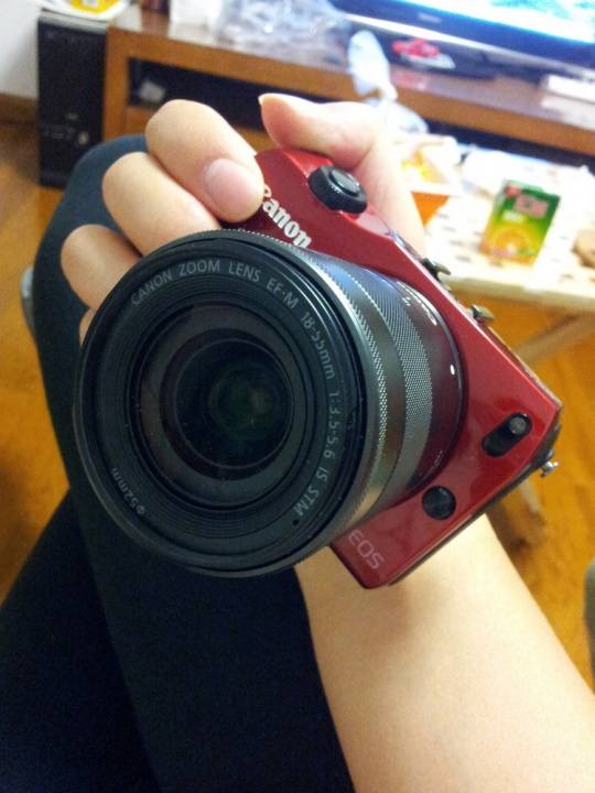 刚从盒子里把EOS-M刨出来的时候,我上手的第一感觉是这小家伙非常小巧,在不装镜头的时候,体积基本上等于我们熟悉的PowerShot S100,外形上也非常神似,让我颇有PowerShot逆袭之感。EOS-M的机身设计平直,连G系列的小手柄都没有设计,只有一块很小的防滑橡胶,背部在机身右上角也有一块贴合大拇指的防滑橡胶,这基本构成了EOS-M的全部持握部分。机身正面设计简单,基本也都是平直的线条,EOS标志放在机身的右下角,显得十分低调;镜头释放钮也非常小,按下去手感不错。机身的背面被大块屏幕占据,这是微单相机非常重要的部分,开机感觉背屏的分辨率和色彩都不错,触摸屏的反应速度也很流畅,反应很快;机背右侧一小条是相机的操作功能区:摄像钮、MENU、回放、功能拨盘、INFO按钮。机顶上最醒目的东西,就是采用了标准尺寸的热靴,这一点非常值得肯定;热靴的左侧是带左右声道的录音麦克;热靴的右侧是相机开关和快门。机身底部是标准的三脚架接口和电池仓,电池仓内是SD卡和LP-E12电池的地方,这块电池只有875毫安时的容量,体积小巧,再看看那么大的屏幕,真是让人有点揪心。EOS-M有多种机身颜色可选,我的这一台是红色机身,厂家希望通过机身颜色的变换,吸引更多的女性消费者。