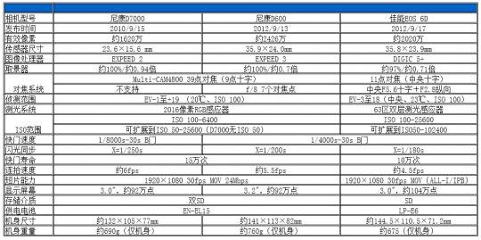 从表面上看D600似乎是D7000的全画幅版,但究竟差别如何?与竞品相比有什么优势吗?下面我们先来看看D7000、D600以及佳能EOS 6D规格比较: