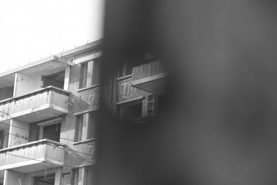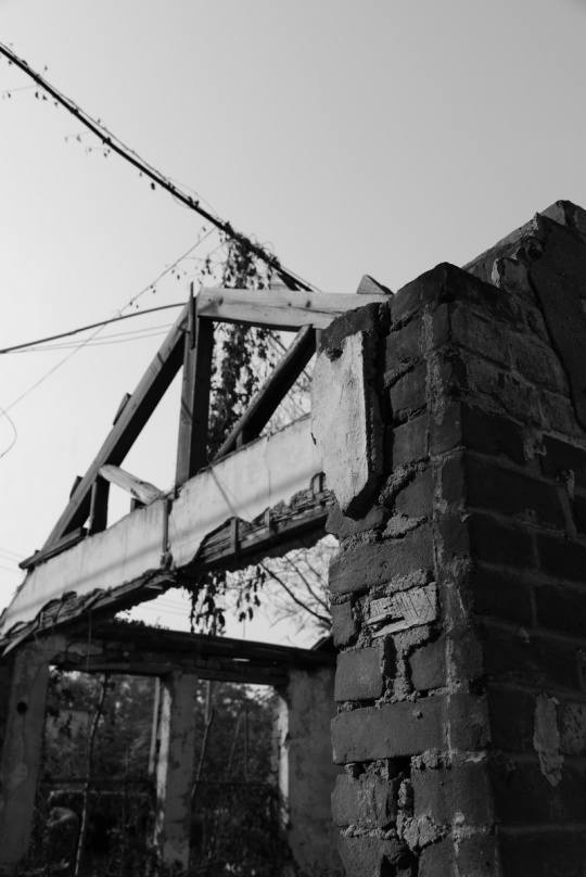 一个周末下午,北京虽然是晴天,但天空仍有些发灰,遛弯时候正好走到一段正在拆迁的老楼附近。拆迁楼中仍有一家钉子户,老楼周围长满荒草,生活垃圾遍地。