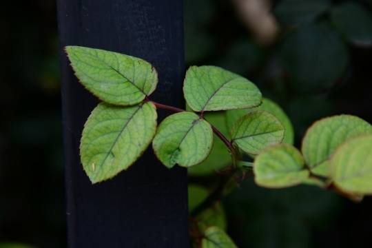 鲜艳模式下 拍摄探出栅栏的绿叶