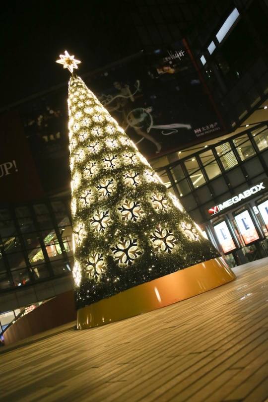 三里屯夜景的灯光一直很独特。在圣诞节来临之前总要有所打扮。