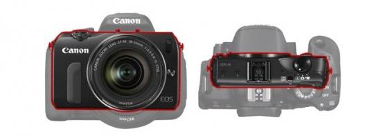 然而EOS M取消了光学取景器和反光镜单元。机身内部构造设计简练,实现了大幅的小型化和轻量化。与EOS 650D相比,厚度约为32.3毫米,减少约41%,重量约为265克(仅机身),仅为EOS 650D的一半。可以说是将EOS数码相机的高级功能融入到一款时尚小巧的机身里。