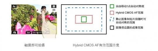 对焦方面EOS M与EOS 650D实时取景下类似,由于图像感应器中央附近的部分像素用于相差检测自动对焦,这样和反差检测自动对焦相结合的Hybrid CMOS AF系统,通过触摸操作选择焦点非常方便。不过在实际使用过程中,由于相位检测区域偏小,整体对焦速度偏慢,比较犹豫。用户使用过程中尽量选择光线较好且反差较明显的物体作为焦点。