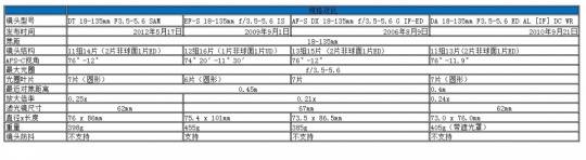 就规格而言,四家产品各具特色,其中尼康那支镜头已经停产,佳能支持镜头防抖,索尼和宾得由于采用机身传感器位移防抖,镜头上无需支持。18-135mm焦段镜头一般是与中低端机身组成套装,索尼为了配合SLT-A77、SLT-A65、SLT-57三款机身,推出大变焦镜头套装。