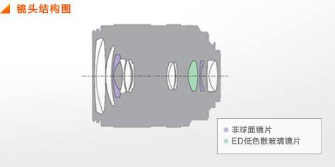 这款内置SAM(平滑自动对焦马达)可以实现快速安静地对焦,让自动对焦操作平滑顺畅;并且支持DMF(直接手动对焦),能快速根据场景需求进行对焦调整。该镜头结构11组14片,其中有1片ED低色散玻璃镜片和2片非球面镜片。