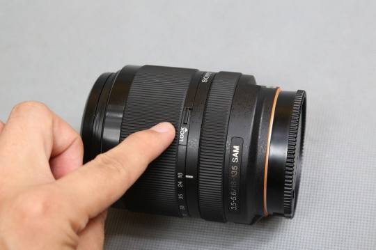 镜头手感、做工塑料感比较强,与不少索尼镜头不同,这款镜头对焦环在后部,变焦环比较宽大,设计在前端。两个环之间有LOCK变焦锁,防止出现垂头。