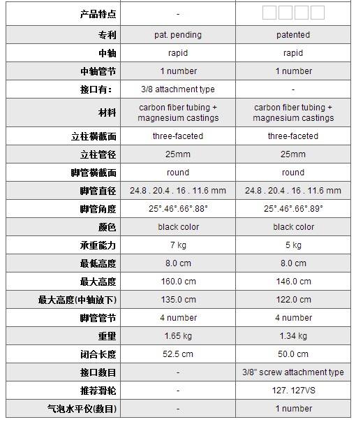从规格不难看出新一代的MT190CXPRO4CN在承重(7kg)、最大高度(160cm)都有了一定提升。不过脚架自重有一定提升,达到1.65kg。