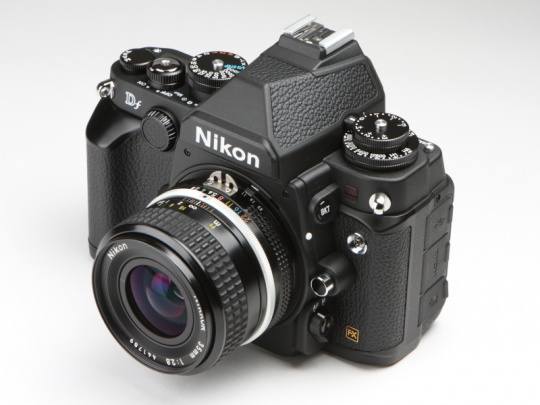 11月初,尼康推出了一款以机械操作为主体的纯摄影单反相机“Df”。其采用了D4相 同的FX格式CMOS图像传感器和EXPEED 3图像处理器,拥有等同于D800一样的防尘防水滴性能,以及15万次的快门寿命。Df是尼康FX格式最小、最轻的数码单反相机。Df中的“f”是 “fusion”的意思。机身顶部刻着“MADE IN JAPAN”,整机采用了复古风格的皮革之感造型。