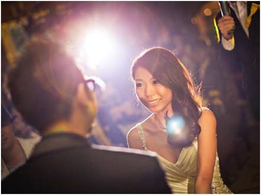 婚礼往往是考验顶级器材的试验场,因为这里的光线条件总是比较复杂。如果是一般的镜头,倘若不能够妥当地运用,那么照片的素质就很容易令人苦恼。而EF 5 0 mm f/1.2L应对复杂环境时就显得相对轻松,这得益于其出众的解像力和对抗强烈光源的能力。