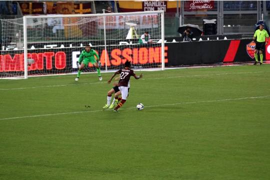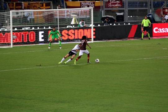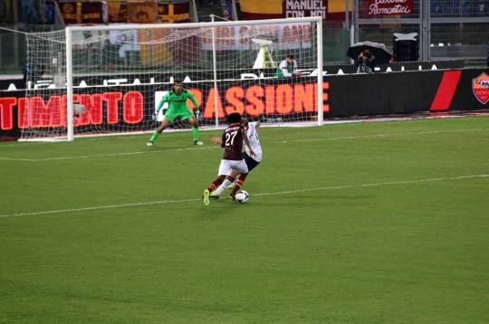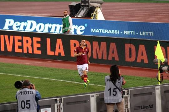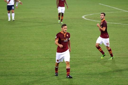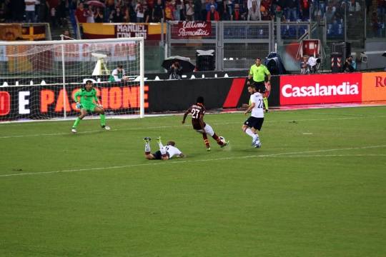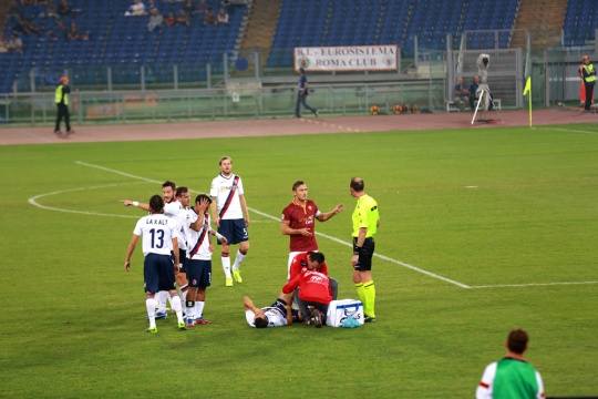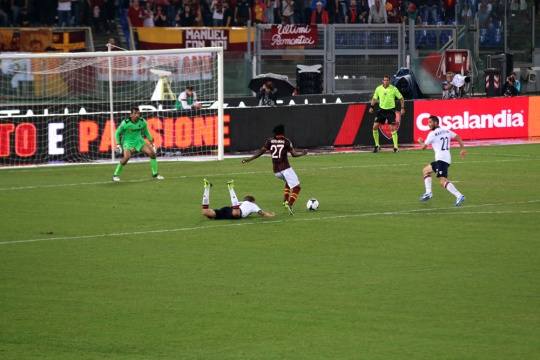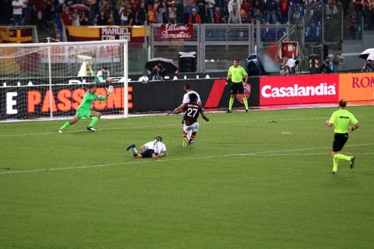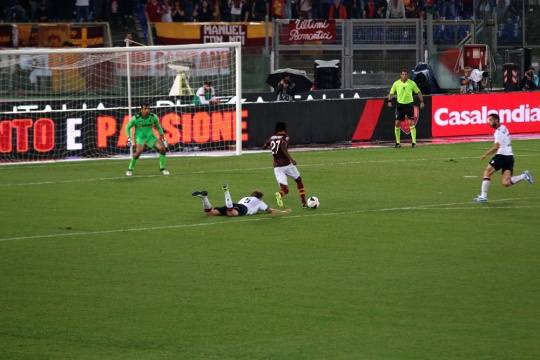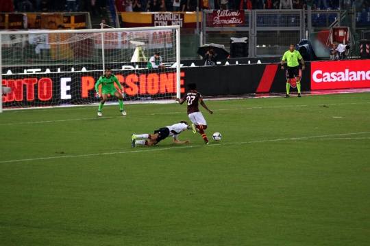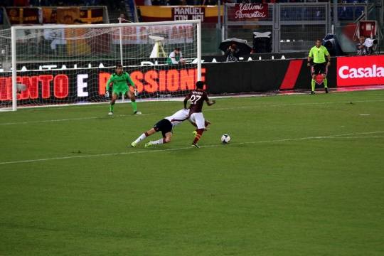 开球了,5D3+爱死小白兔,罗马王子托蒂正在与裁判沟通。