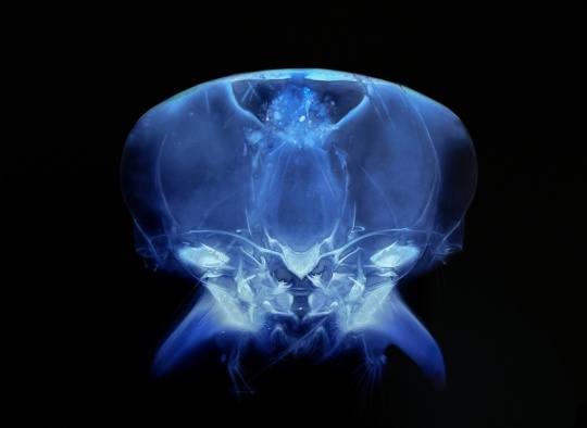 试机照:拍到了外星人---蚊子幼虫孑孓的头部,实物大小0.2-0.3毫米。D800E+20X 48张堆栈拍摄