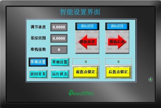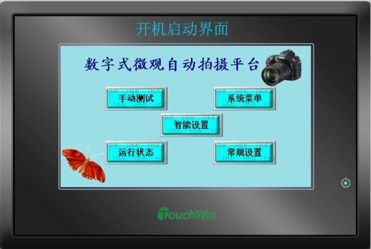 《数字化微观自动拍摄平台》部分控制和运行状态的触摸屏人机界面。