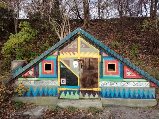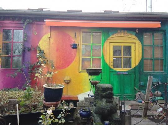 这里是位于哥本哈根城内的自由城,这个区域内的人吸食大麻是合法的,这些画是一些吸完大麻的人即兴画出来的。