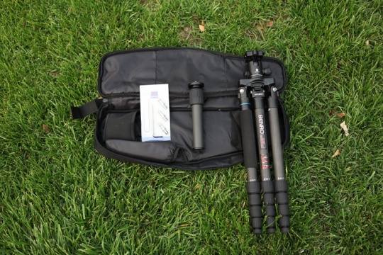 打开此款脚架背包的一瞬间“一”字设计的理念让笔者对此款脚架的设计者的想法悠然钦佩,说实话,如果不是知道它是一个三脚架,会觉得它里面装的是一个乐器呢,此款脚架除了主体的脚架套装外,厂家还附送了一款短中轴以及金属脚钉扳手小工具,方便使用者根据不同的拍摄情况和使用情况来调节手中的脚架。