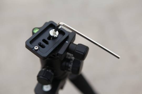 附带的L形扳手可以帮助我们锁紧快装板与相机的锁紧螺丝。
