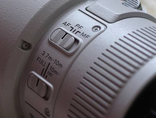 这个限位器非常有用。它分为了几个不同的最近对焦距离范围。当摄影师大概知道被摄体的距离时就可以在限位器上选择相应的对焦距离,这样镜头就会快速的进行合焦,从而缩短镜头的对焦行程,让对焦速度明显提升。在抓拍一些快速移动的目标时特别有用。