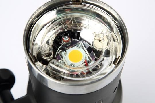 这款影棚闪光灯配备20瓦LED高亮造型灯在保证足够亮度的同时有效地降低了功耗,可轻松调节亮度(5-100%)。LED灯缺点是功率偏低,但发热低很多,长时间照明,拆卸灯罩时不会烫手。