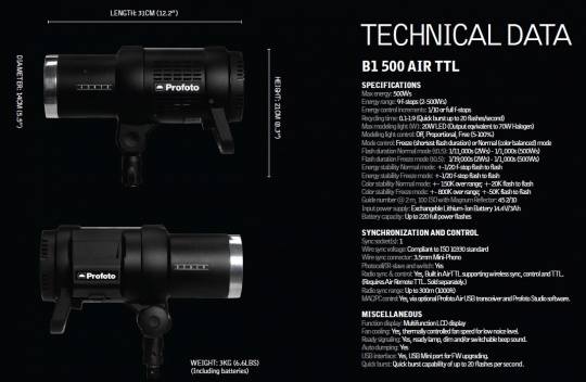 Profoto(保富图) B1 500 Air TTL闪光灯其他指标也非常不错,最大500ws输出可以轻松压制阳光,最小2ws输出,拥有9挡输出调节范围,可以1/10微调,最低输出时每秒20次高速连闪不漏下每一个画面,最短1/19000秒闪光持续时间凝固动态瞬间。