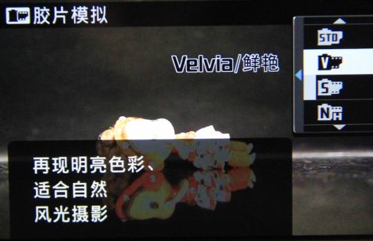 富士独有的胶片模拟,包括PROVIA / 标准、Velvia / 鲜艳、ASTIA / 柔和、黑白色(+Ye / R / G 滤镜)、棕褐色、PRO Neg.Std、PRO Neg.Hi