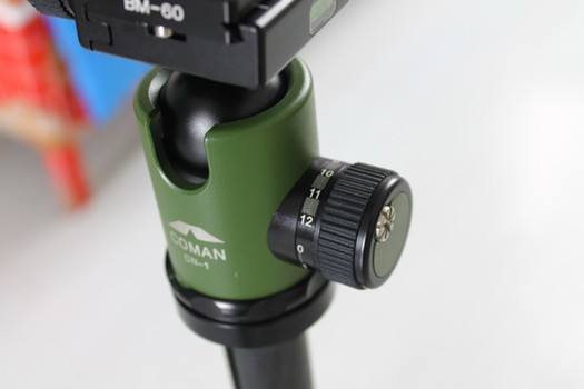 这几个旋钮的作用我就不多做解释了。不过科曼CM-0云台在控制部分,多出一个旋钮,用于调节球头活动的阻尼,使用中发现,只有当该旋钮旋到阻尼最大的位置时,球头活动才明显变得粘滞,其他位置感觉到不是很明显,不过还是比较喜欢这个设置,调节球头活动阻尼,有助于防止松开球头锁紧旋钮时,相机迅速倒向一边,起到对相机的保护作用。