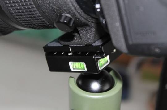 可惜的是脚架上没有水平调节水泡,对于脚架的水平调节没有一个可靠的参照。只是在云台快装板底座上有横向和纵向两个水泡,对于相机竖排时,没有水泡可以参照调节。