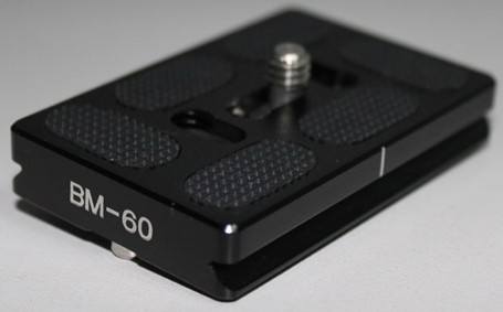 中轴升起后可以明显的看到中轴上有一道凹槽,与脚架上的凸起想匹配,有效防止在使用中中轴的旋转。云台上也标识除了型号:“CN-1”和快装板的“BM-60”。