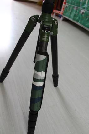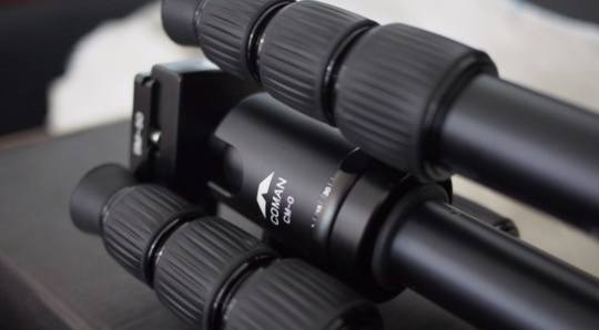 三脚架通体黑色,表面处理十分到位,哑光的表面带着些许金属的味道,三个伸缩腿都有海绵护手,其中一个还有科曼公司的印刻英文。分分钟带来品牌的感受,看来这个设计对北方的摄友来说是非常体贴的,听说北方冻起来会把鼻子冻掉了吧,嘿嘿,我大重庆是体会不到的,不过要是夏天40多度的高温天气,吸汗的功能也算吧。反正,科曼不惜材料的这种细节作风,是对广大摄友的福音,毕竟产品质量靠谱才是王道。
