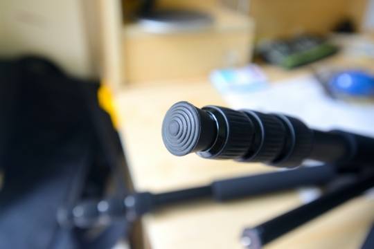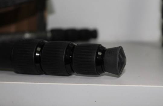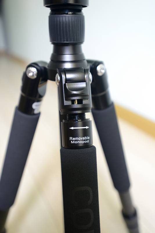 科曼动车组系列TM-256A脚架呢,同样还有一个重要的功能,就是可以变成一个独脚架,按照脚架的标示,旋开脚管后,该脚管就变成了独脚架的杆身,连接上云台后,当当当,一根威武的独脚架就现身了。虽然我没有使用独脚架的习惯,并且思想里也觉得独脚架不可靠,但是一物多用,也算是给了消费者多一种选择吧,说不定有些同志喜欢这个功能得紧也不一定呀。