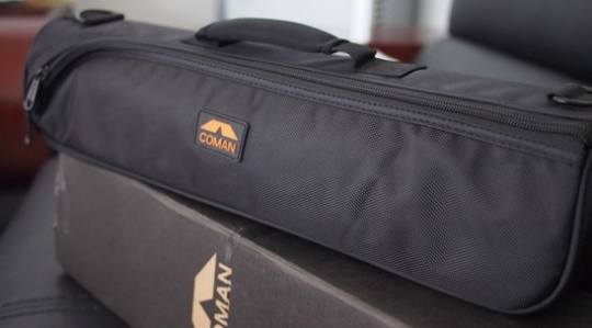 脚架包设计得较为别致,小巧玲珑,包装紧致,科曼橙色的logo位于正中,品牌醒目。所用化纤织物应该是较好的面料,包壁的填充材料厚薄均匀,富有弹性,对三脚架的保护应该是全方位,这个包包可是以后三脚架的保护神哟。尤其拉链的设计新颖,斜开式,能够半掀开脚架包,扩大包的开口,方便三脚架的进出。这样的人性化设计,我觉得很实用。