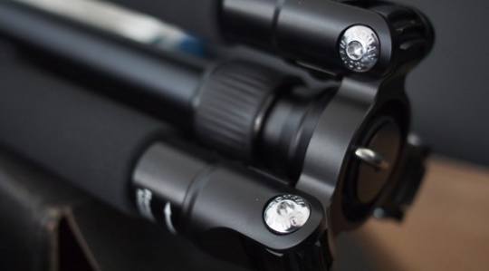 刚开始试用的时候,感觉各个部件的阻尼都很大,脚架腿很难掰动,后用脚架包里附带的内六角扳手对脚架腿上的螺丝进行了一番调节后,使用起来顺畅自如。当然你可以根据自己的需要进行紧固还是放松,完全由你个人支配。在脚架腿上的铭牌中,详尽的标识出了脚架的品牌与型号,包括螺旋管腿松开和锁死的螺旋方向,使用起来十分方便。