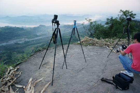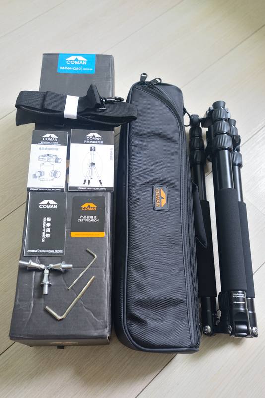 这架能背着到处走的1.73公斤重的科曼(coman)牌的TM-256A架子和CM-0云台完全满足了我对三脚架的所有的要求。最高1550,最低220.承重10公斤,折起后长度420,中轴挂,橡胶和钢脚钉,独脚架,扎扎实实的云台,升到最高时在微风中绝不颤抖的三条腿。最后我想说的是,中国人能做出这么好的三脚架感到自豪。