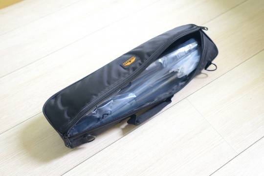 打开外包装,产品附带一个脚架包,看起来质量很不错的样子,实际用手摸一下,确实质量不错,针线的缝合,提手处海绵的设置,细节做得都很好。绝非“某宝”上三五十山寨脚架包做能比拟的!