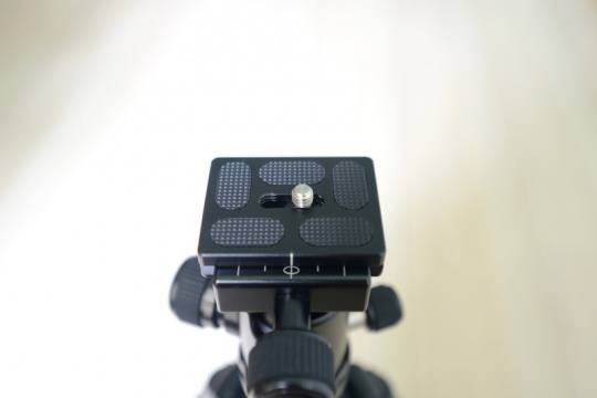 先来说说云台,云台上标识出了360°全角旋转刻度,对于想全景拍摄的摄友是一个十分便利的工具,可根据度数进行旋转调节。