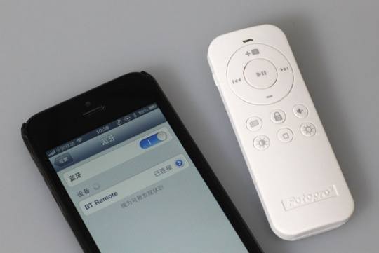 至于遥控器和手机匹配方面也相当简单,只需打开遥控器电源开关和遥控右方的匹配键,就能够在手机的蓝牙设备列表中发现“BT Remote”这个选项,再点击一下,出现“已连接”字样就可以使用了。